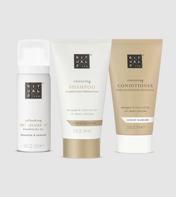 Contains Restoring shampoo 70ml, Restoring conditioner 70ml, Refreshing dry shampoo 50ml.